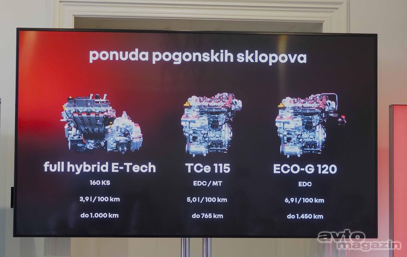 Ponuda motora također je ažurirana - glavna novost je potpuni hibrid E-Tech sa 118 kilovata (160 KS), koji obećava kombiniranu potrošnju od samo 3,9 litara na 100 kilometara. Hibridni sustav omogućuje vožnju na struju do 80 posto vremena u gradskim uvjetima, što znači do 40 posto manju potrošnju goriva u usporedbi s klasičnim benzinskim motorom. Uz hibrid, bit će dostupni benzinski i LPG motori snage 85 kilovata (115 KS) i više.